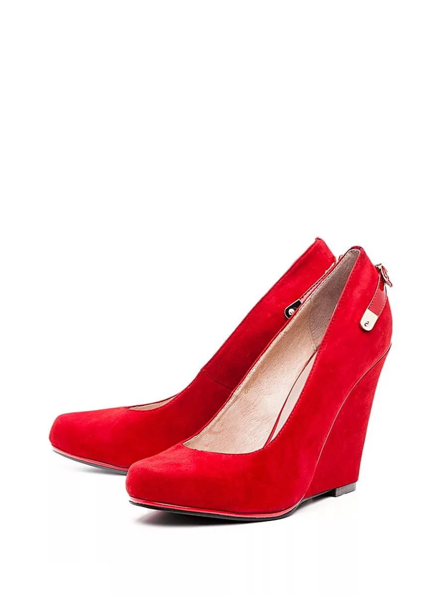Remarkable models of suede wedge shoes are very popular due to the comfort during wear, increased stability, as well as the ability to visually increase growth and stretch the figure. These red shoes are perfect for walking, working or shopping.