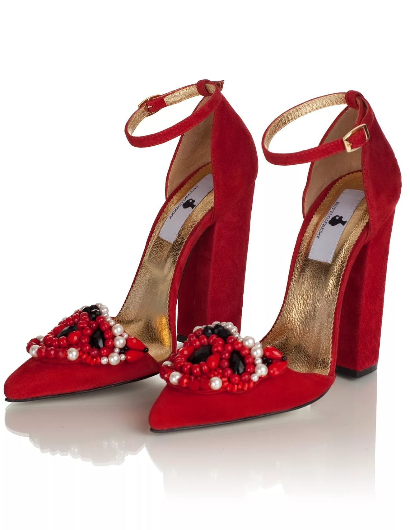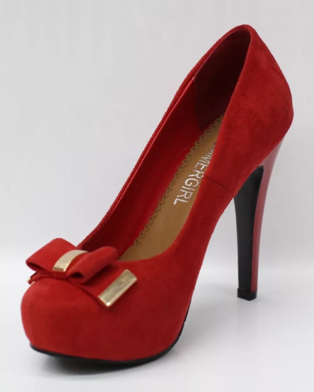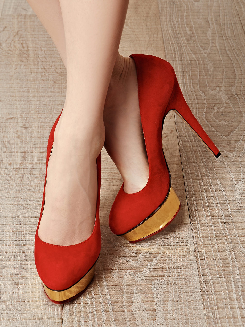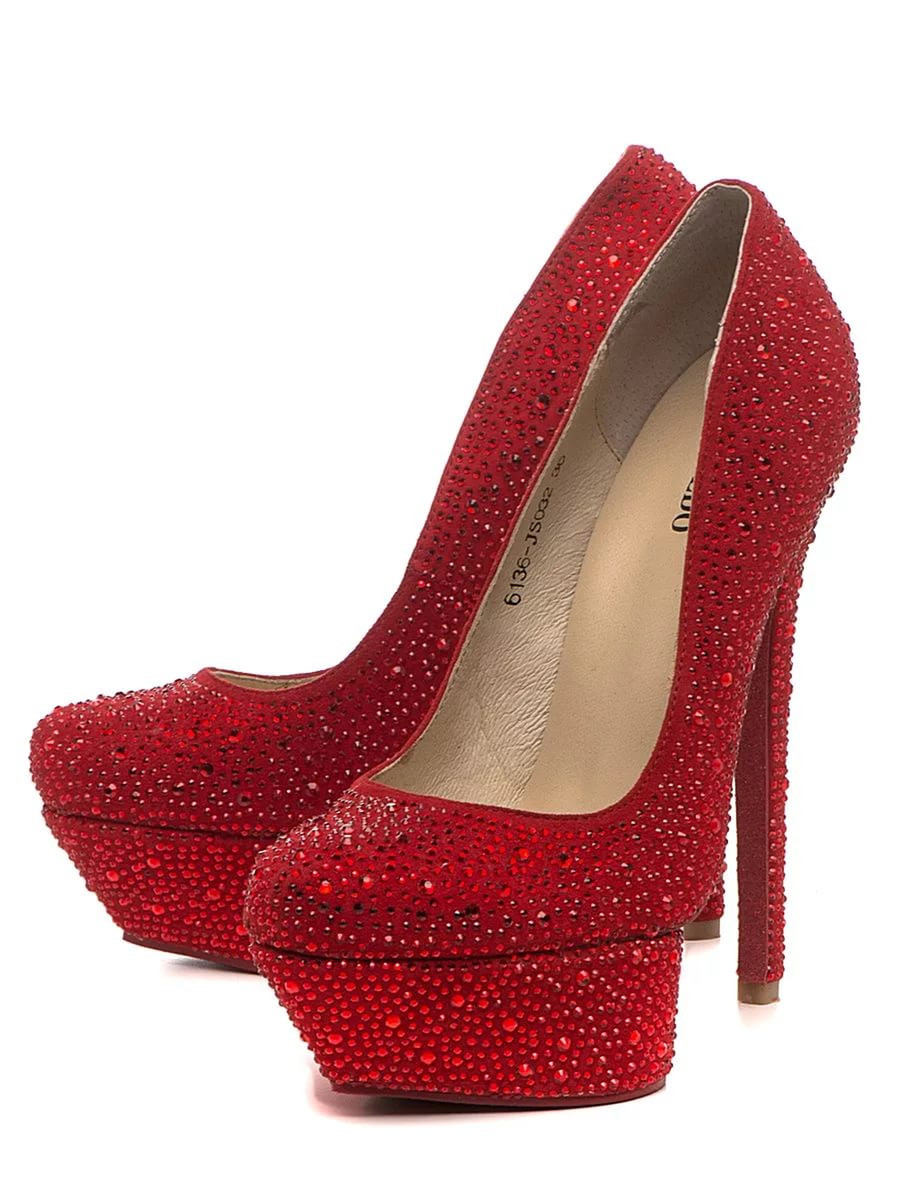 Red suede stilettos often embellish: