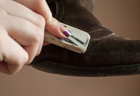 Fresh dusty traces can be easily removed with a brush from the surface of suede shoes. If suede started to shine, then you should clean it with a special eraser. Before embarking on these procedures, it is worth treating the shoes with steam.