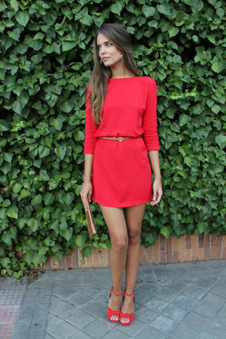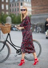 Red shoes are perfect for any dress of dark or light, delicate shades. Dress length can be from mini to midi, since maxi dresses often cover shoes, there is no sense and need to choose this particular model.