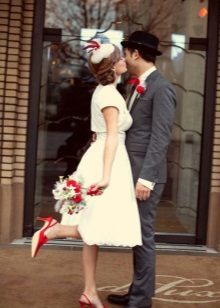 The most spectacular red shoes are combined with dark green, dark blue, dark purple and black dresses. Among the light in priority will be almost all shades of white, light pink, coffee, peach. Bright colors should be avoided, because not all of them are successfully combined with each other, and in some cases, and at all, overload the image.