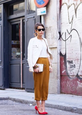 Pants can be picked up different, like a classic cut, and narrowed pipes - the shoes will look luxurious in any case. As for the colors of the pants, the same shades as described for the dresses will do.