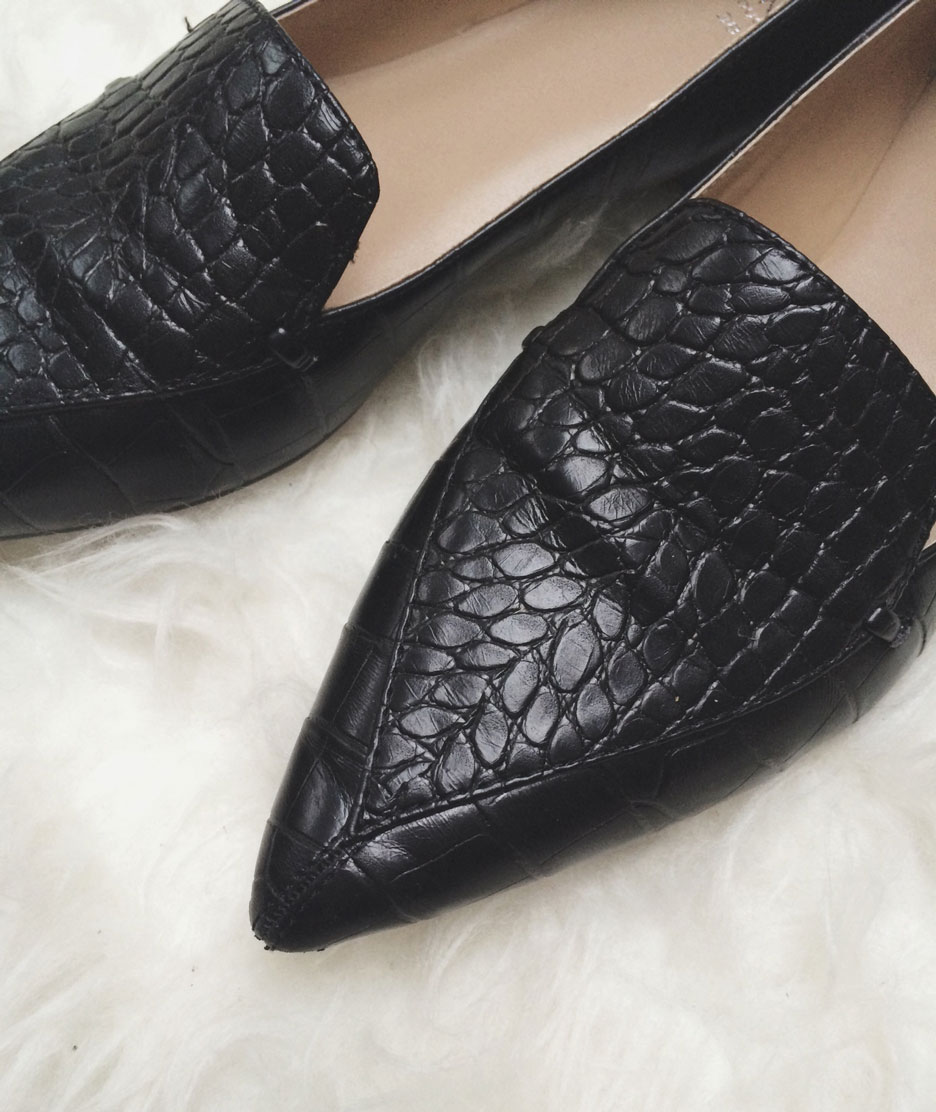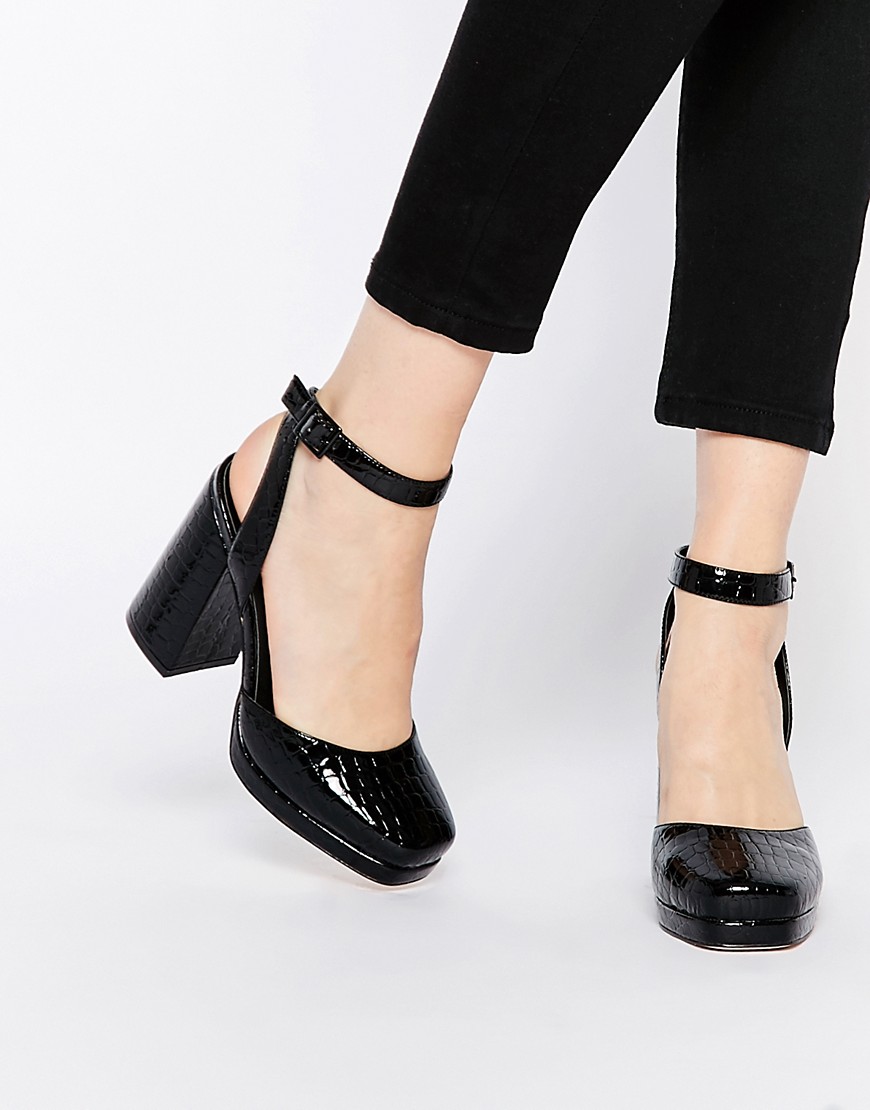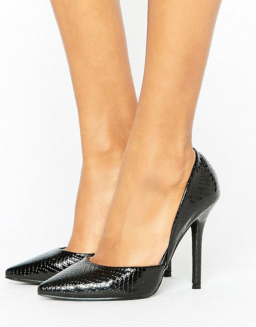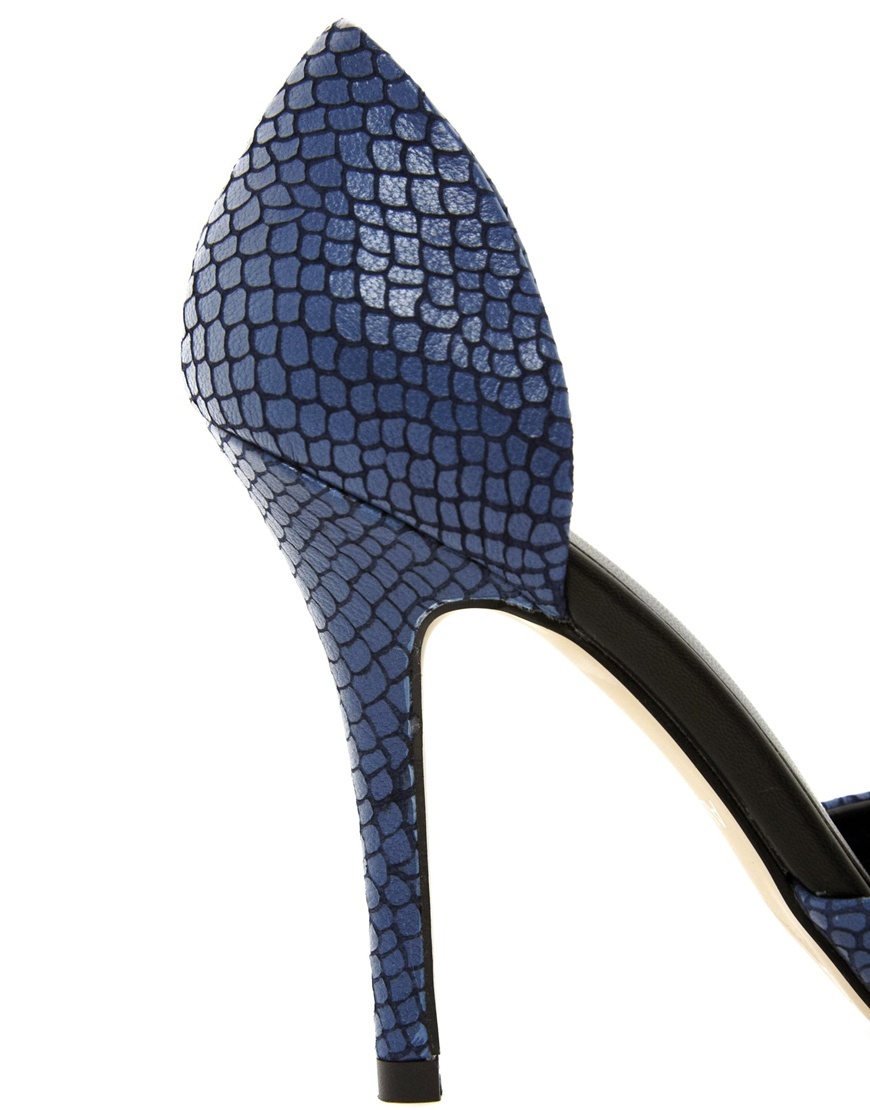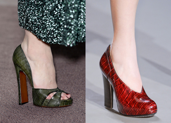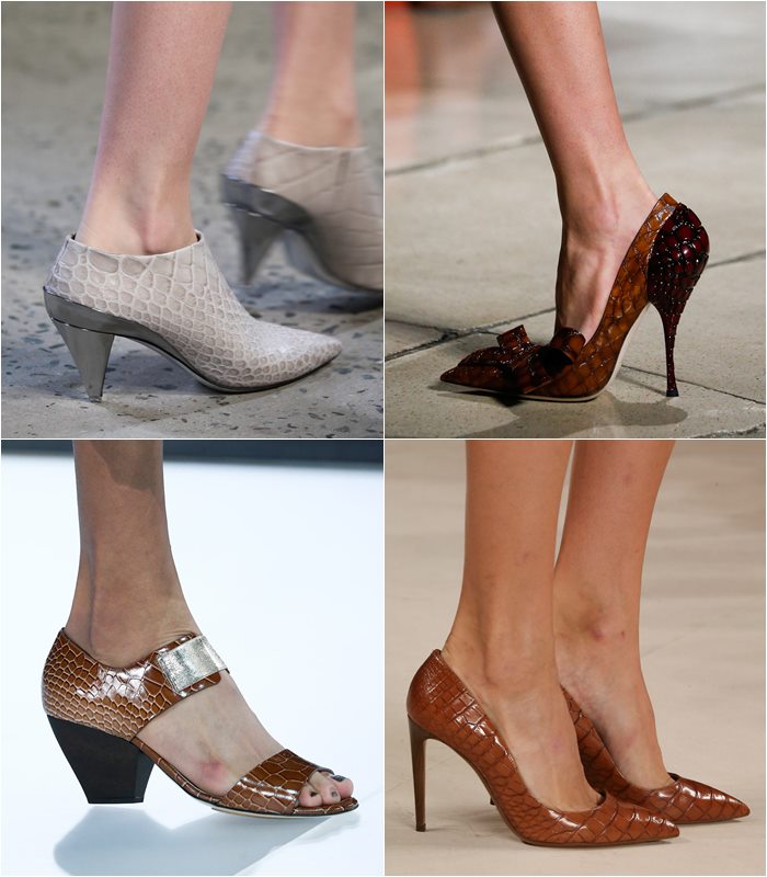 - American brand DKNY, offering fashionable shoes with curly side details and embossed leather under the reptile;