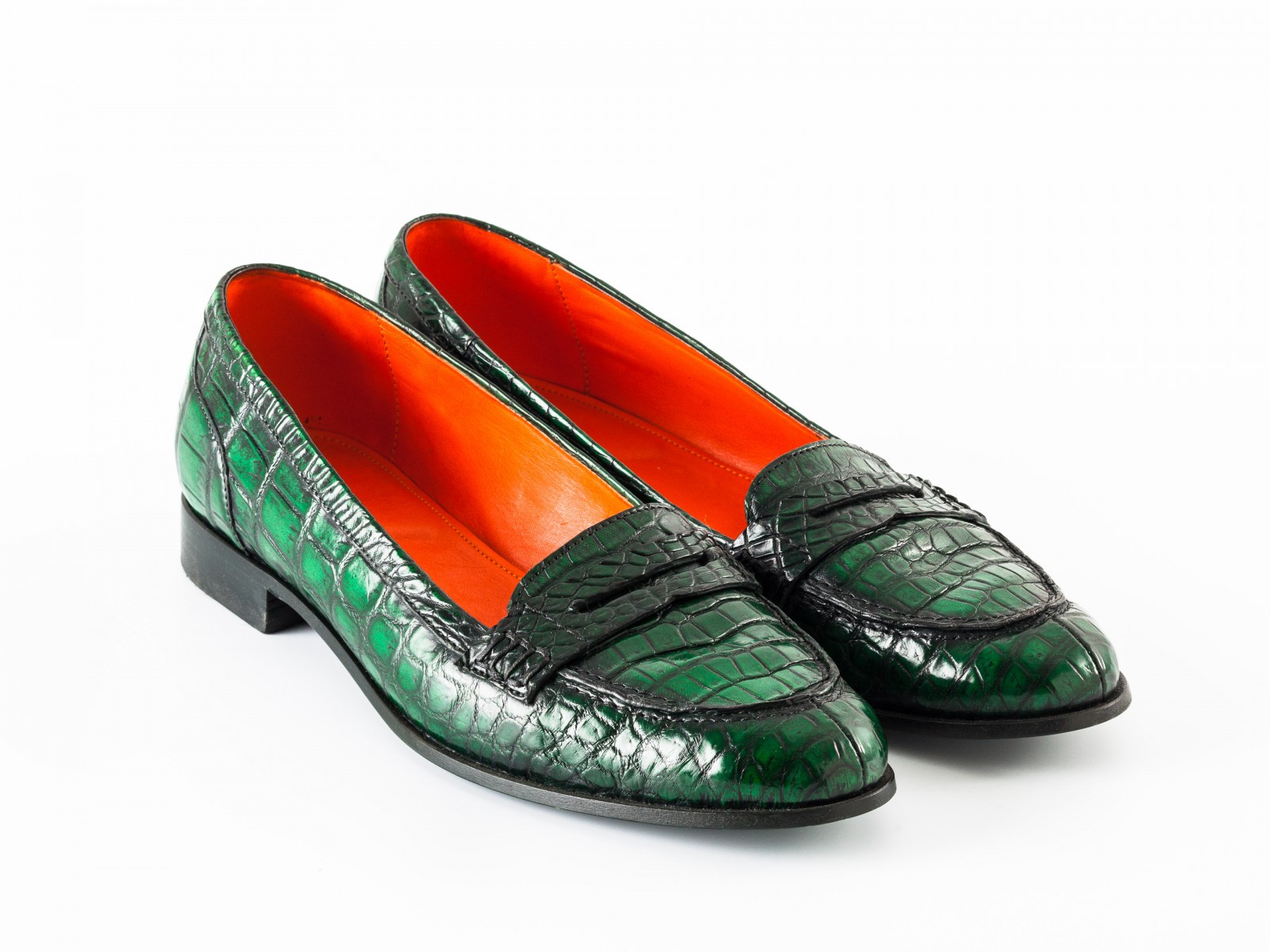 Expensive, luxurious women's and men's shoes of crocodile leather are made by elite brands.
