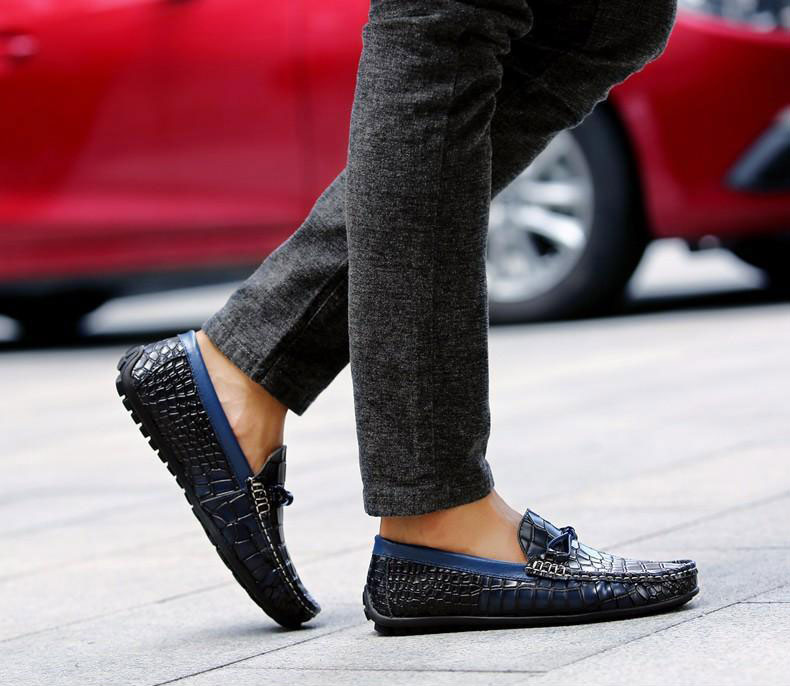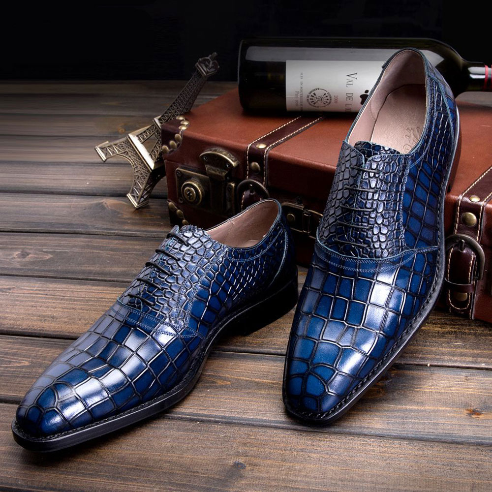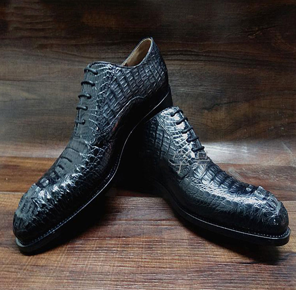 Crocodile shoes of black and dark blue color will look very harmonious with stylish casual outfits or expensive branded suits.