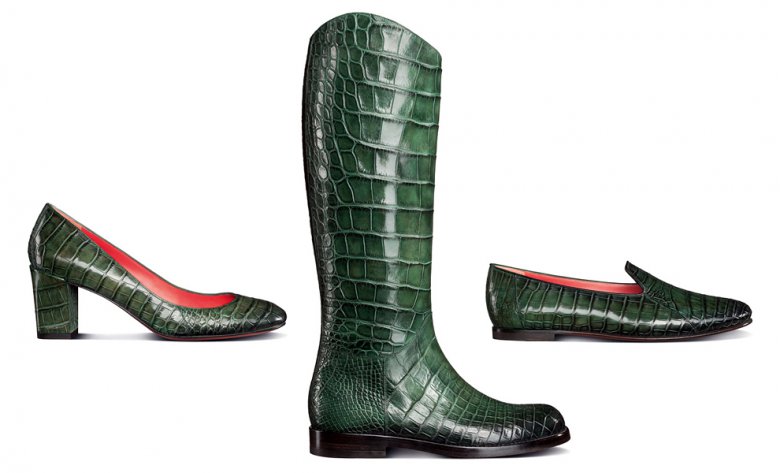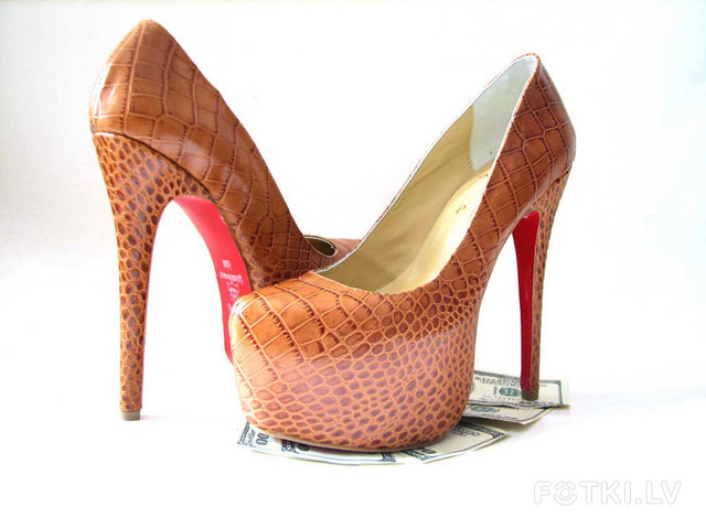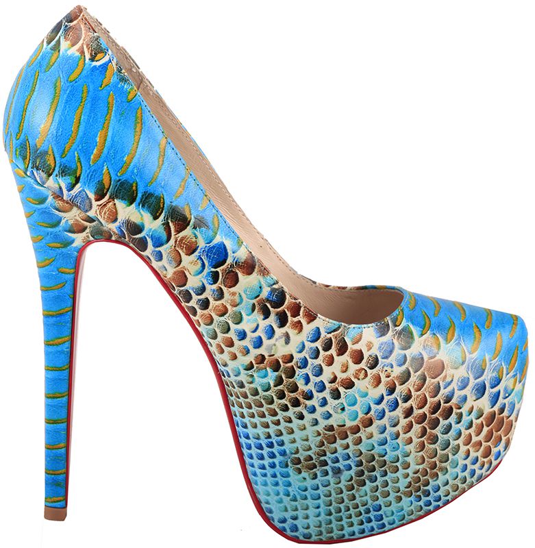 - Christian Louboutin brand, offering chic high-heeled shoes and a platform of black and white leather for a reptile;