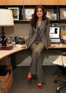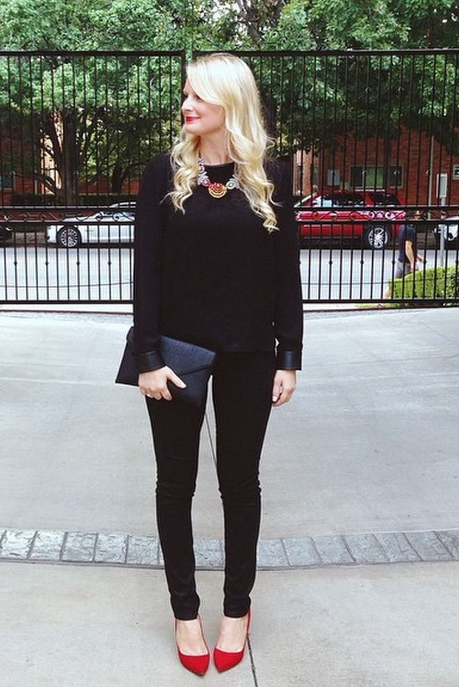 Since red shoes are great for all base colors, they can easily be combined with a business style. Pantsuits and pencil skirts in combination with white or pale pink blouses will complement the ensemble with red shoes.