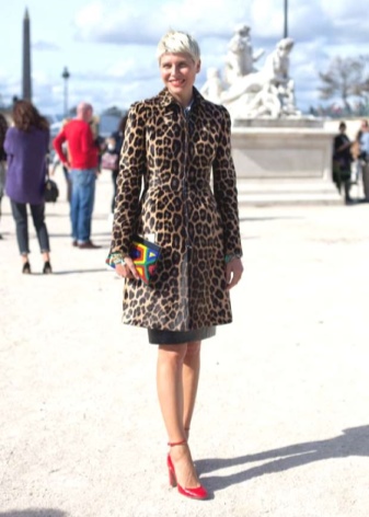 If with red shoes the girl decided to wear clothes decorated with a print, then its elements should overlap with the shoes and harmonize the image.