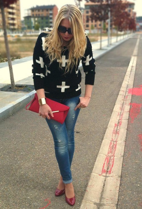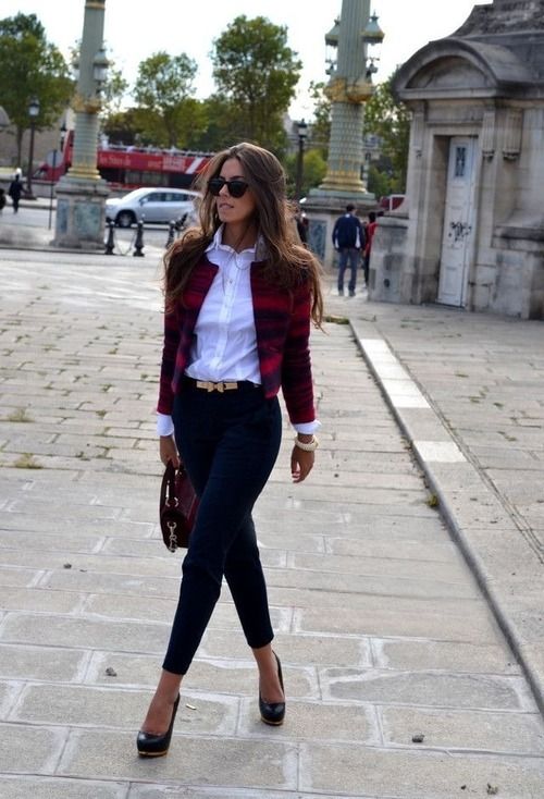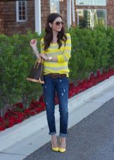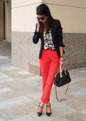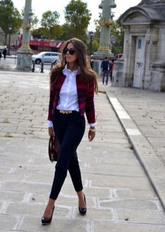 All models of trousers and jeans, except for flares, are suitable for lacquered shoes with heels of heels. This also needs to be considered. To flare better fit wide or square thick heels, wedges.