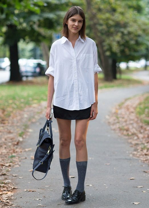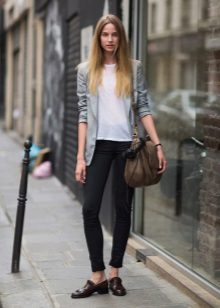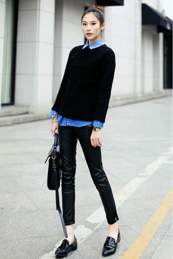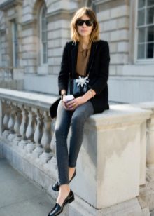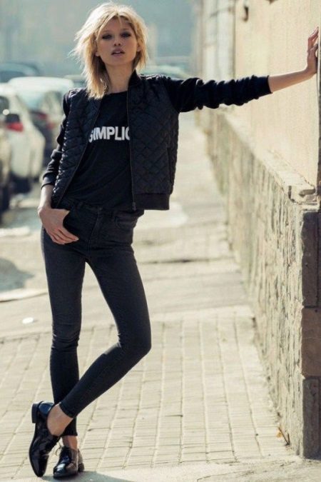- Black lacquered oxfords will be a stylish complement to the image of a young and free girl. These shoes are suitable for everyday wear in combination with tight jeans, skinny pants. In combination with black jeans, a T-shirt and a black short jacket, this look looks very modern and stylish.