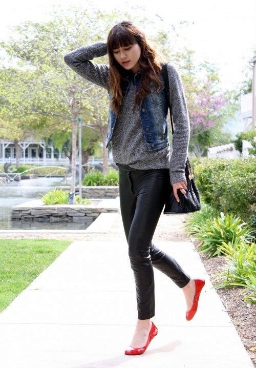 Lovers of solid sole and shoes without heels are also popular ballet flats from patent leather.