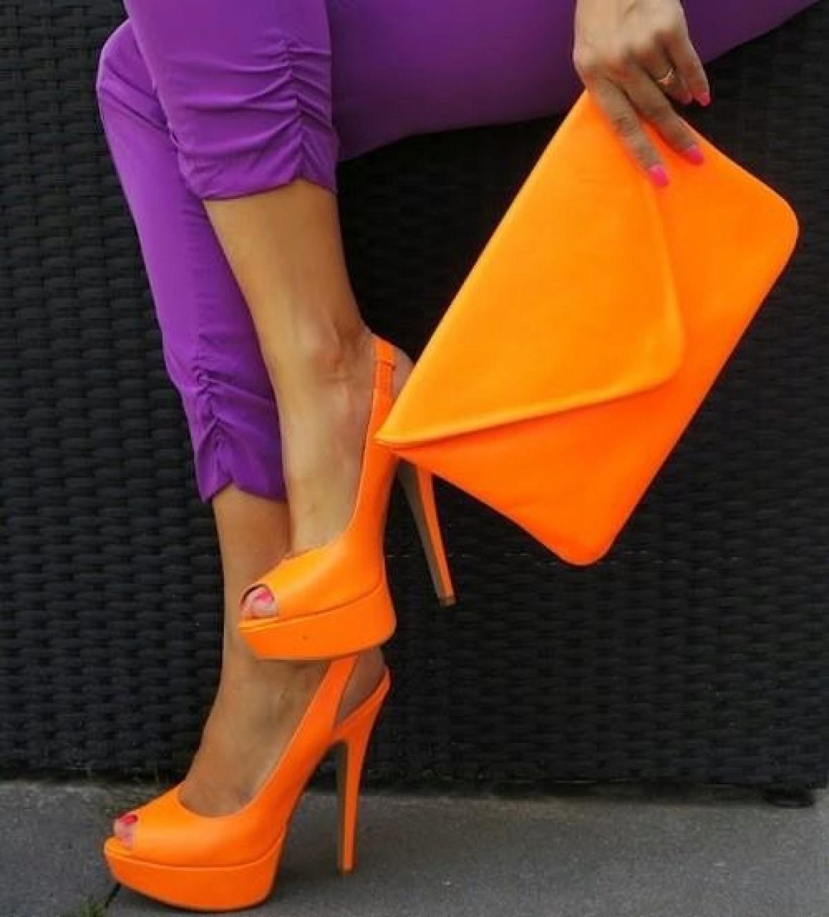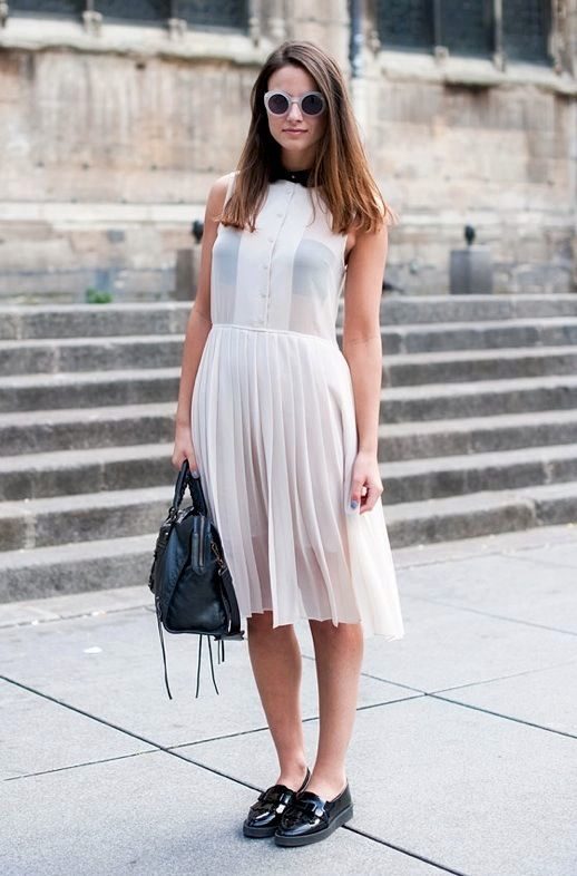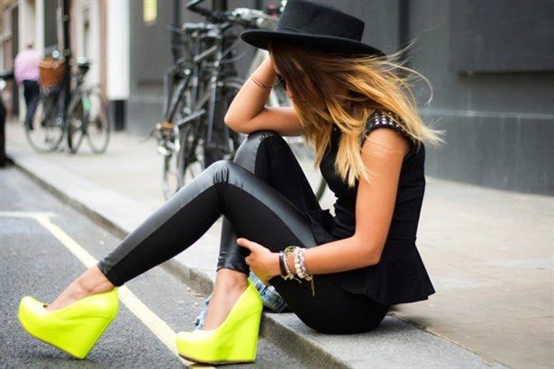 Boats on patent leather studs or platform shoes with studs need to be shown, i.e. if you choose pants, they should be ankle-length or you need to tuck in your pants.