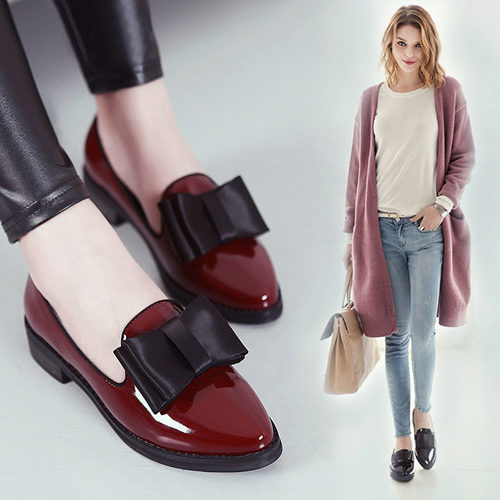 Closed broggies and oxfords, loafers and moccasins are also often made of patent leather.
