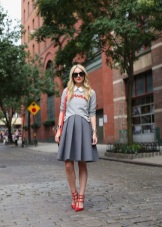 From skirts the ideal option for office style will be those products that have a midi length. It is recommended to pay attention to flared and free models of soft and faded tones. The top should be as simple as possible. Such an image can be complemented with a fitted jacket or a stylish cardigan with a turndown collar.