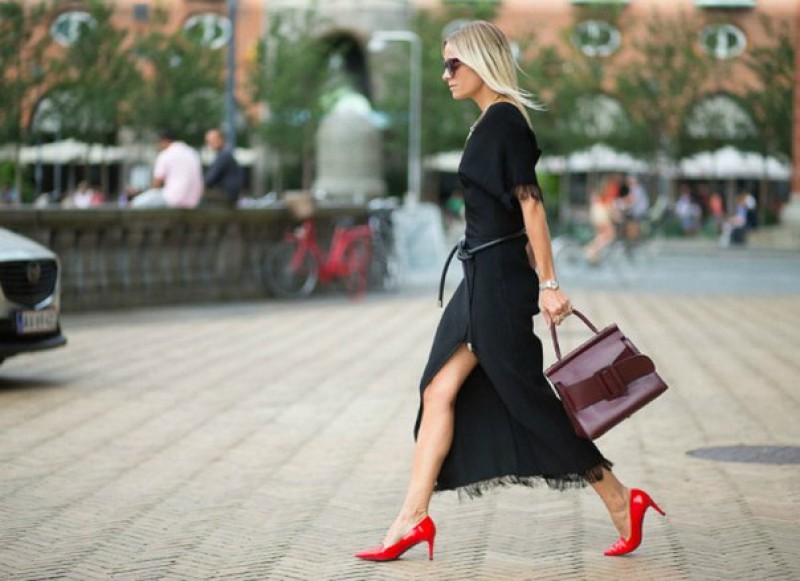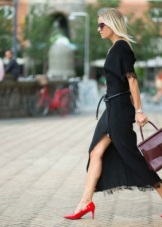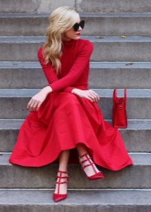 This model will be especially well in harmony with midi and maxi length dresses made from non-glare matte materials. Red patent leather shoes should serve as the main decoration of the bow, which is why you should pay attention to the simpler cut of the dress and its color palette.