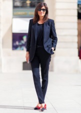 Evening style will best emphasize the lacquered model "Mary Jane" on the hairpin and a small platform. It can not only visually lengthen the silhouette of its owner, but it is also beneficial to emphasize her image. The most effective combination of this accessory will be with an elegant trouser suit. It can be separate and made of dense material, or, conversely, cohesive, whose cut includes straight or flared leg of thin material.
