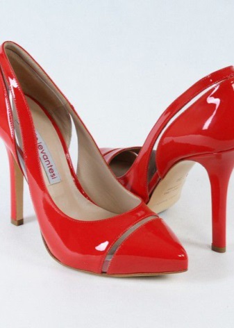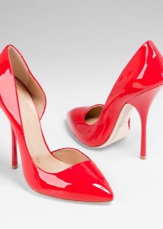 The most popular model of red patent-leather shoes among girls and women are stiletto heels with a pointed toe. Many stylists classify this product as a classic of women's fashion. These shoes look not only stylish and elegant, but also feminine.
