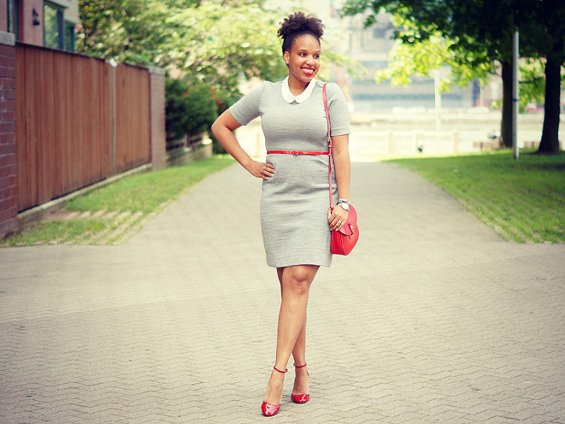 In the summer, you should pay attention to the stylish sundresses of dark shades, which will be no less stylishly combined with red lacquered shoes. Such a bow can be supplemented with sunglasses and a small handbag.