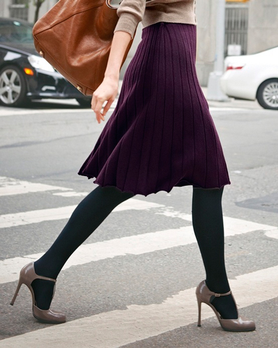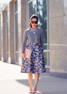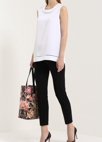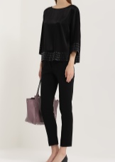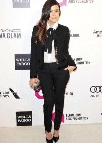 You should not wear it with a brilliant dress, fancy accessories in the form of giant and metallized jewelry and sequined handbags. Complicated clothing should be avoided. A thin lacquer strap or a modest clutch bag is appropriate. It is not recommended to wear glossy, especially patterned, to glossy shoes. It is better to choose bodily or black translucent stockings.