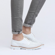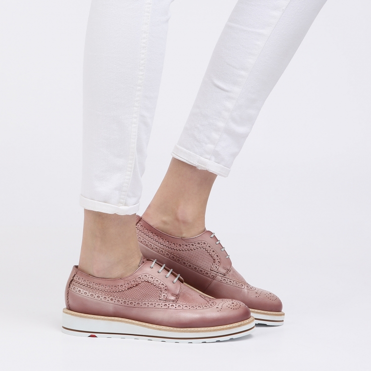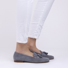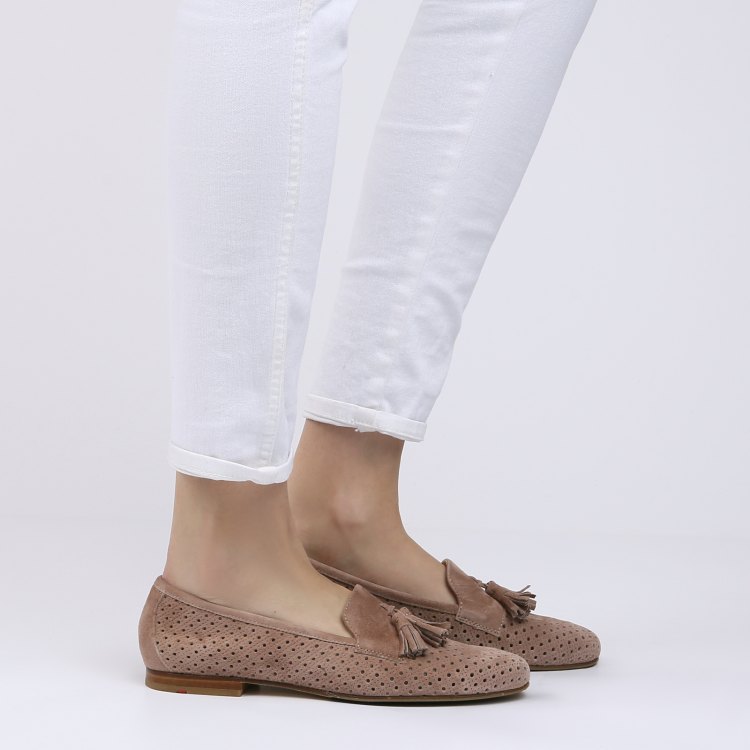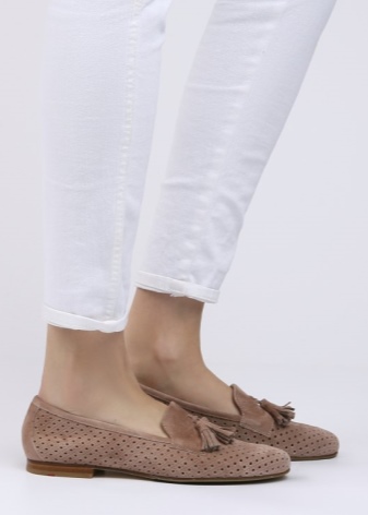Suede shoes with a small heel (1.3 cm) with perforation are suitable for the summer season. Soft and comfortable models, reminiscent of moccasins, will be the perfect solution for the active fashionista. In such shoes you can go shopping or for a walk. On the rise at the perforated shoes is a lace with a fringe.