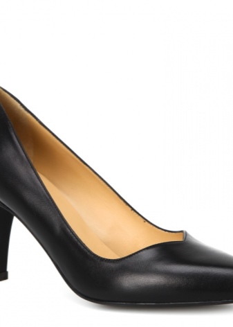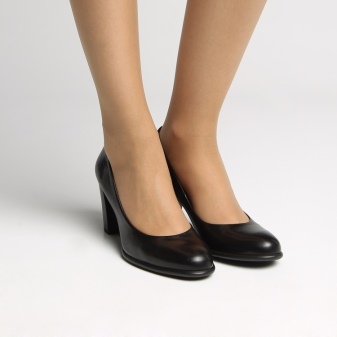 Classic shoes made of genuine leather on an average heel will delight customers with their versatility. The model in black color perfectly fits both in casual and business style. The toe of such a product is slightly rounded, which makes the shoes very delicate and neat.