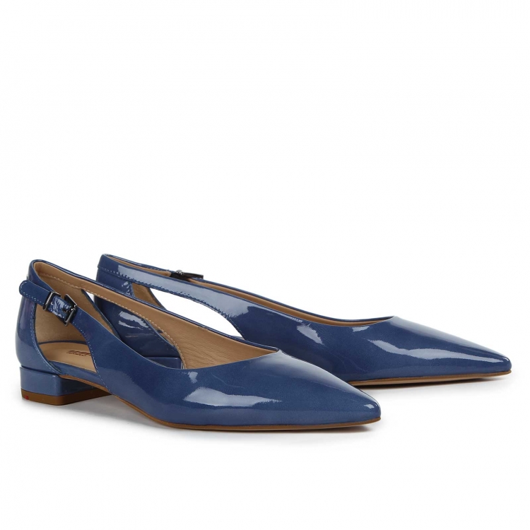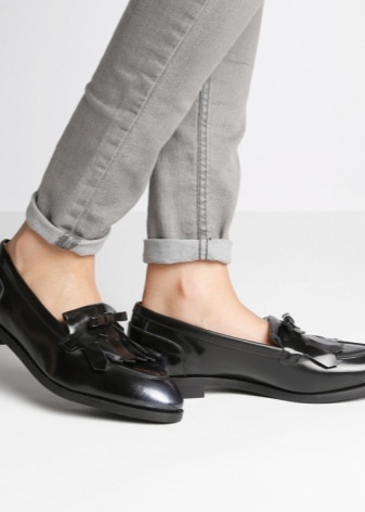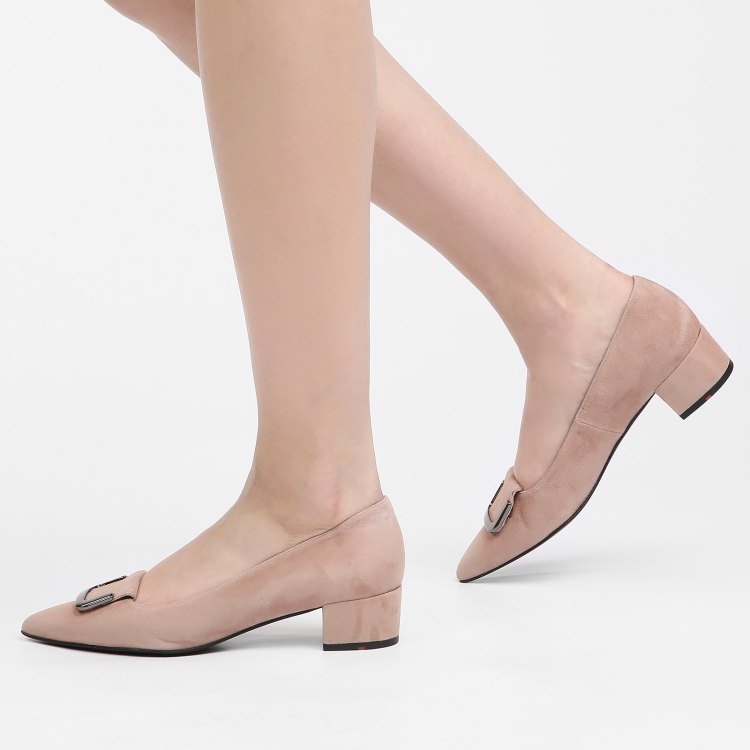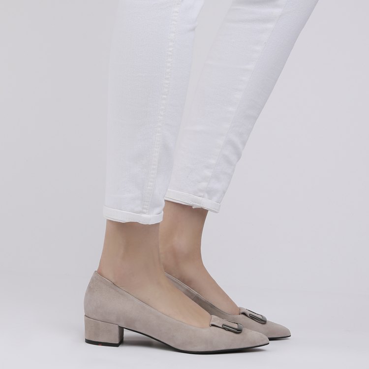 Pointed toe boats with a small heel (2 cm) look very elegant. Such models are equipped with clasps on the sides. Interesting and very comfortable products perfectly fit into everyday images. Such shoes are suitable for an active lady who spends a lot of time on her feet.