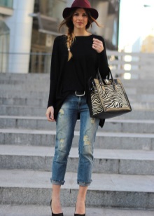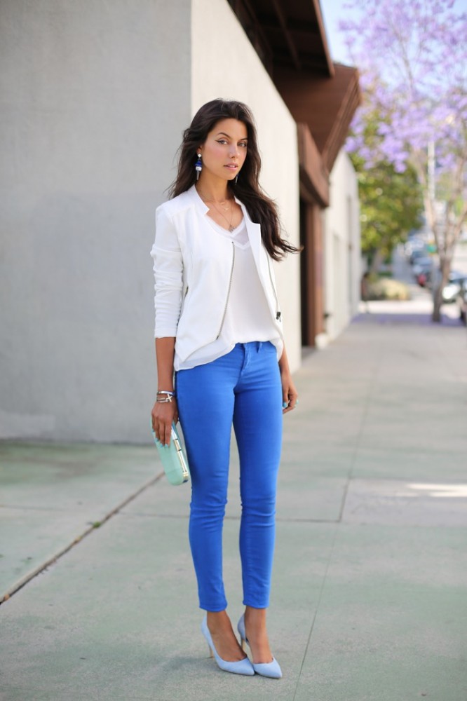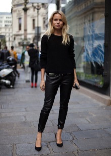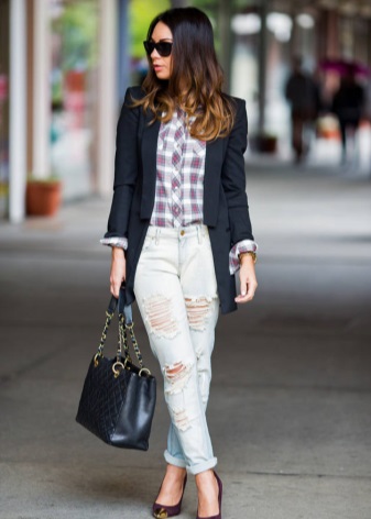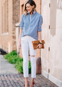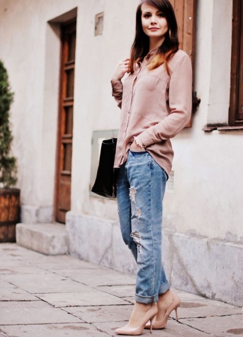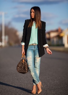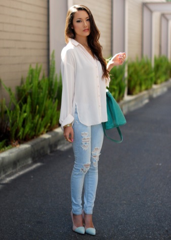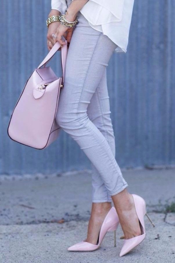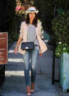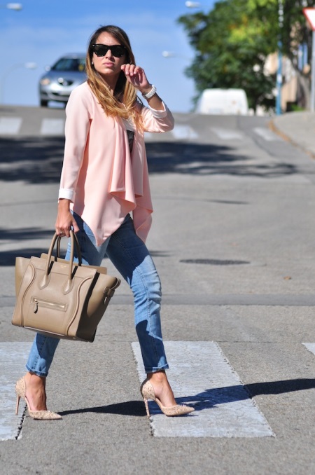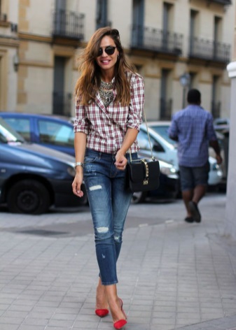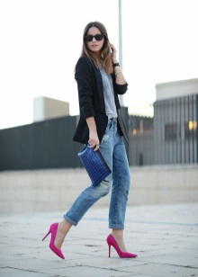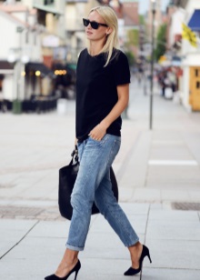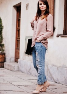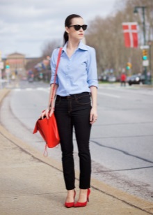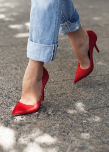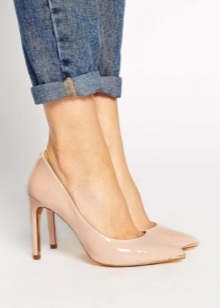 Jeans are extremely easy to match with pumps, regardless of style and cut. But it is worth remembering that the shoes of bed tones will be equally well combined with jeans of any shades, while shoes of dark shades should be combined only exclusively with a dark bottom.