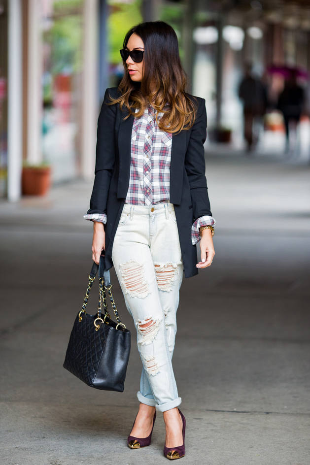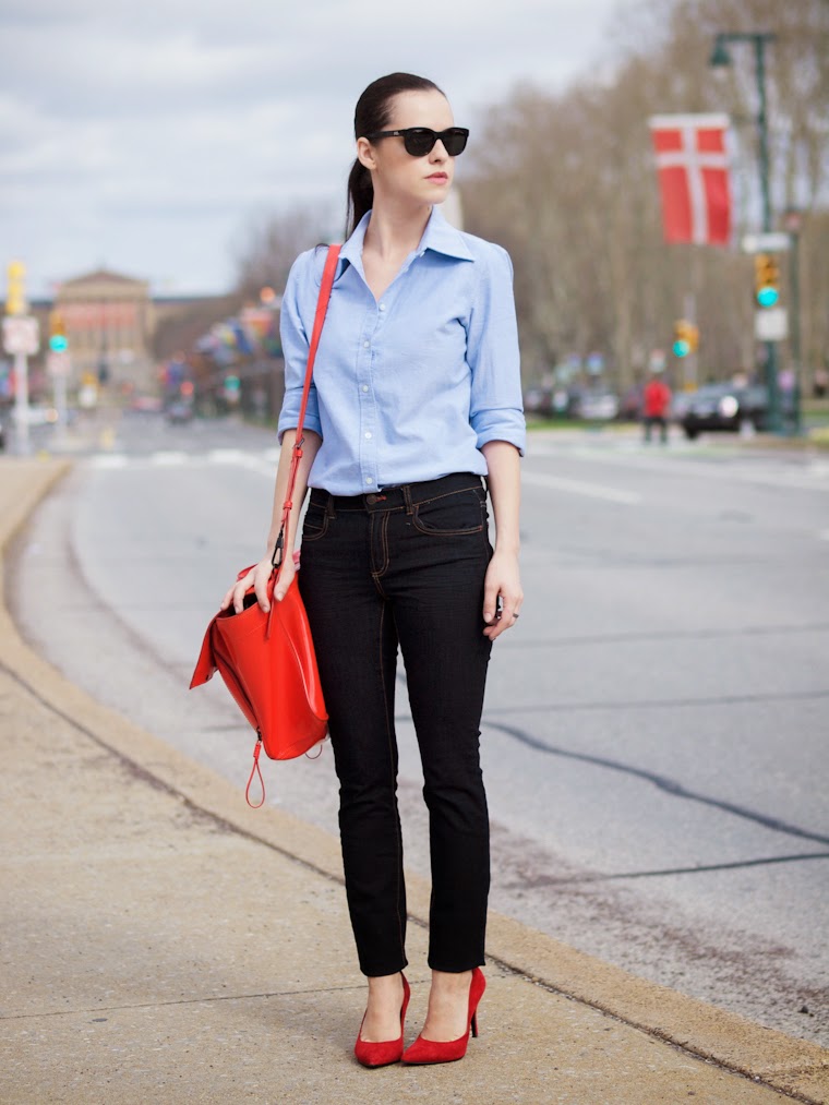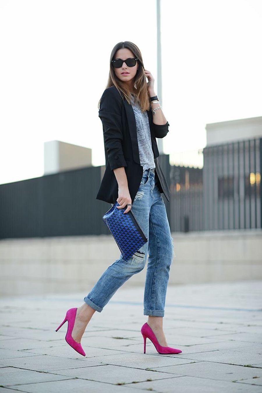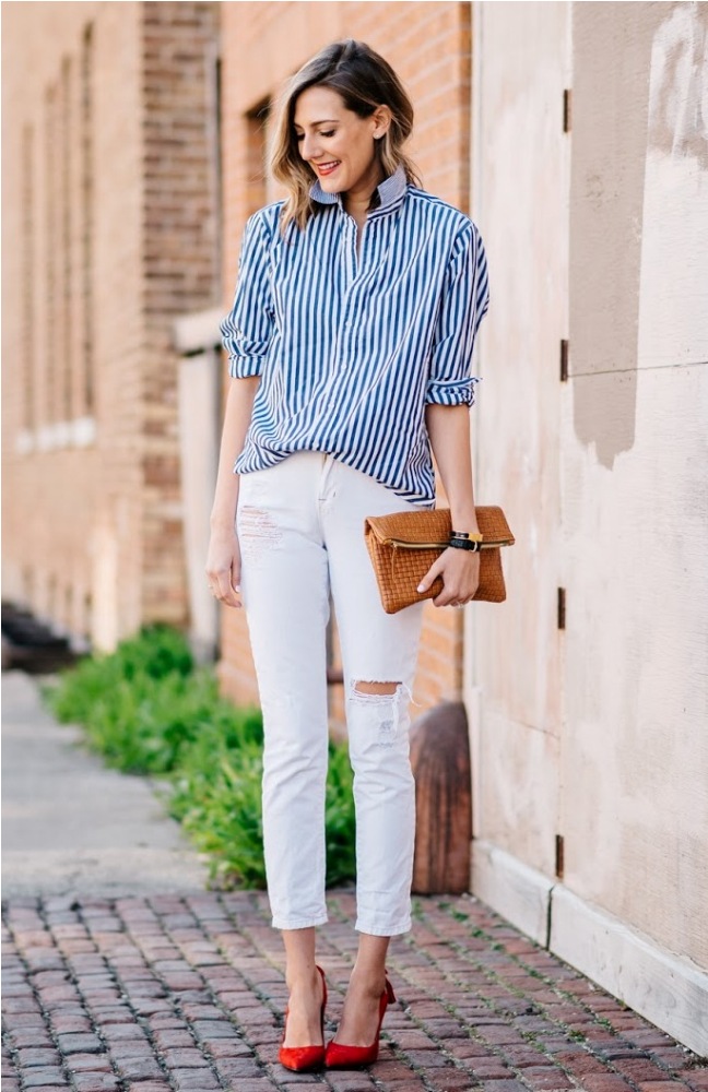 Jeans are extremely easy to match with pumps, regardless of style and cut. But it is worth remembering that the shoes of bed tones will be equally well combined with jeans of any shades, while shoes of dark shades should be combined only exclusively with a dark bottom.