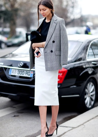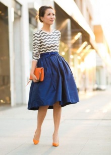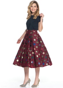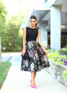 Medium-heeled boats combine equally well with all types of skirts. The top should be selected depending on the cut of the bottom: a free top will fit the tight skirt, and a flared pleated - the top, able to emphasize the silhouette line of its owner.