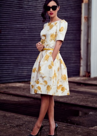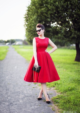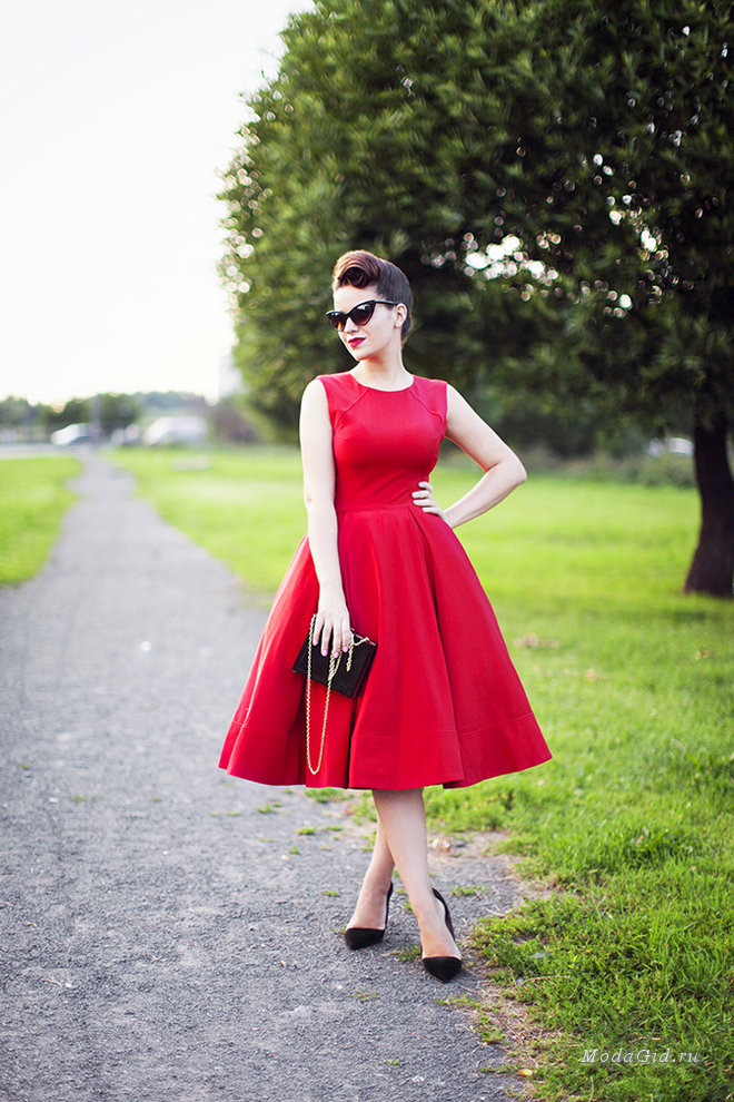 Preparing for an important date or a solemn event, the girl and the woman want to emphasize their image with feminine accessories. For this case, fit the shoes on an average heel and with a rounded toe. They will be perfectly combined with dresses made of lightweight “flying” materials and not fitting flared skirt.The length of such products can be absolutely any: from mini to maxi.