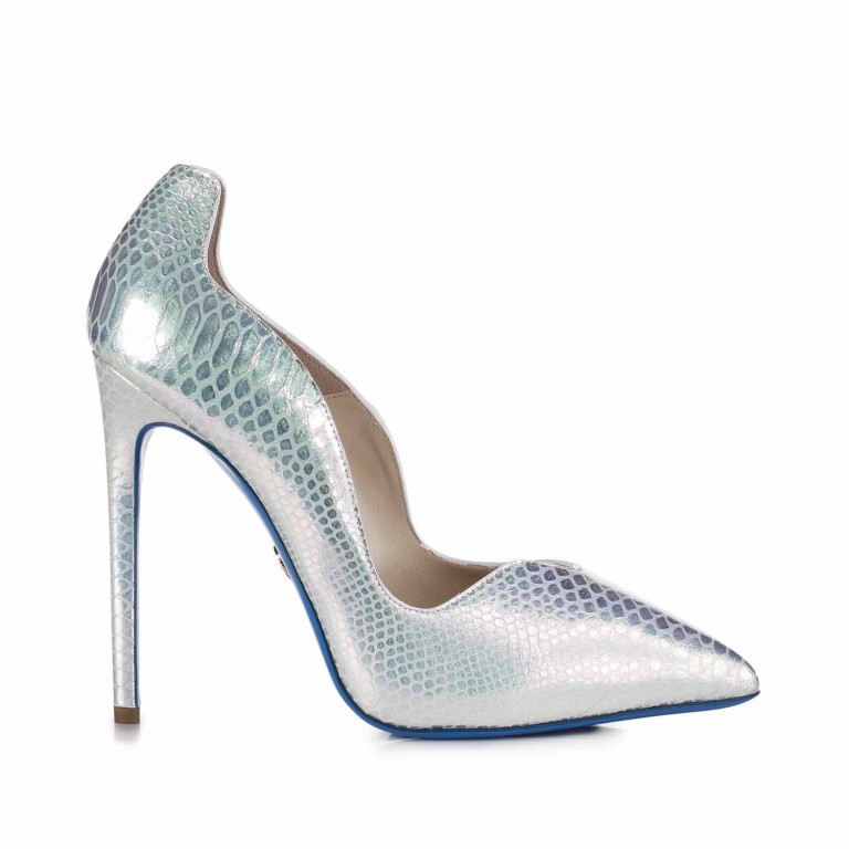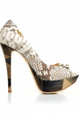 Loriblu never ceases to amaze customers with its new look at familiar things: lacquer shoes with imitation of snake skin can be an unusual color with pearlescent gold or silver plating, which gives the effect of color transfusion under different lighting angles.