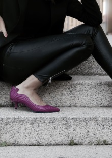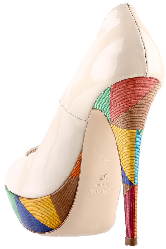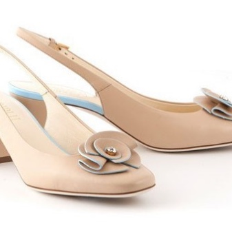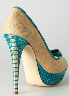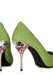 Different combinations of materials are used (smooth leather and suede, leather and silk, metallized elements, leather and plastic), and contrasting colors. Models differ in the form of heels - studs, wedges, wide flat heels, straight, in the form of a cone, trapezium, cylinder, etc.