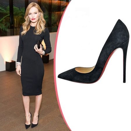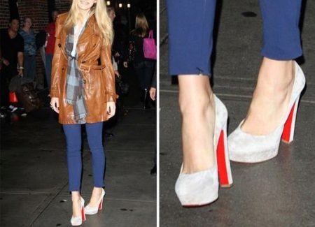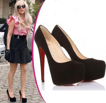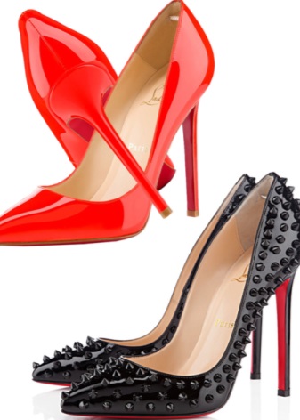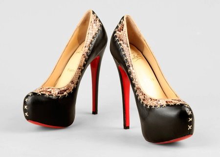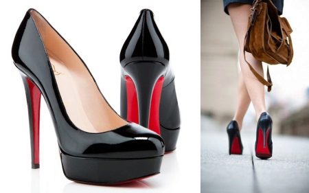 Of course, the first thing that comes to mind when the word "Labuteny" - this elegant boat with high heels. The height of the heel is a symbolic symbol of these shoes and in such a model it reaches 12-14 cm. Thanks to this heel height, the bright red shoe sole is visible to others even when a woman is standing.