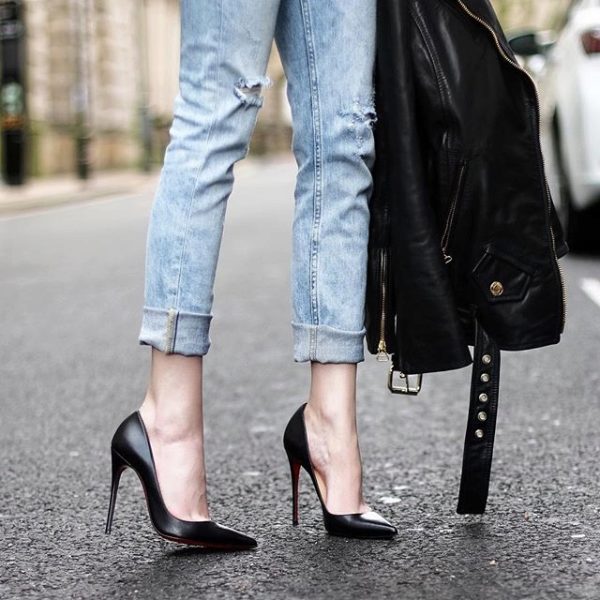 Black Labutenes unexpectedly go well with boyfriend's perky jeans.