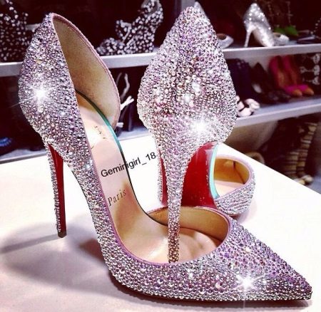 In contrast to spiked labutenes, shoes with rhinestones instantly give your image lightness and brilliance in the literal sense of the word. These shoes will be appropriate at parties, prom or corporate party.