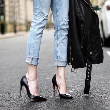 Going to a party is not complete without studded laputens or a pair of shiny rhinestones. Such shoes are appropriate on the dance floor or in a nightclub. But be careful with the outfit, most importantly, do not overdo it. After all, these shoes will be the central part of the image, so it is better to choose clothes of the same color. If you are to attend a formal event or a business breakfast, then your choice is black boats in combination with monochromatic strict outfits.