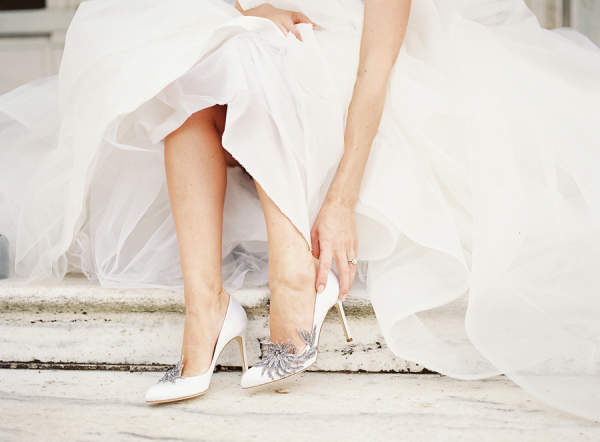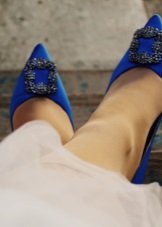Swan bridal shoes - another brilliant role irresistible manolos. The youth saga “Twilight” became an excellent platform for presenting original satin boats in white color, with bright rhinestones. They were made specifically for the wedding scene of the heroine Kristen Stewart (Bella Swan).