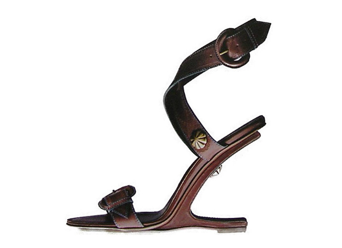 - Another furor, Manolo Blahnik, produced at the Jean Paul Gautier show, where he presented futuristic model, the creation of which he dreamed from the very beginning of his career. The model gained the name “Arunium” and was distinguished by an S-shaped spring-block.