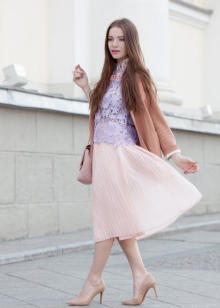 Shoes of milky color can be called universal shoes. They are combined with almost any of your clothes. An exception will not be and clothing of similar colors. White, beige, cream, light brown and chocolate colors will be perfectly combined with them. Classic neutral colors (white, gray, black) would also be an excellent option.
