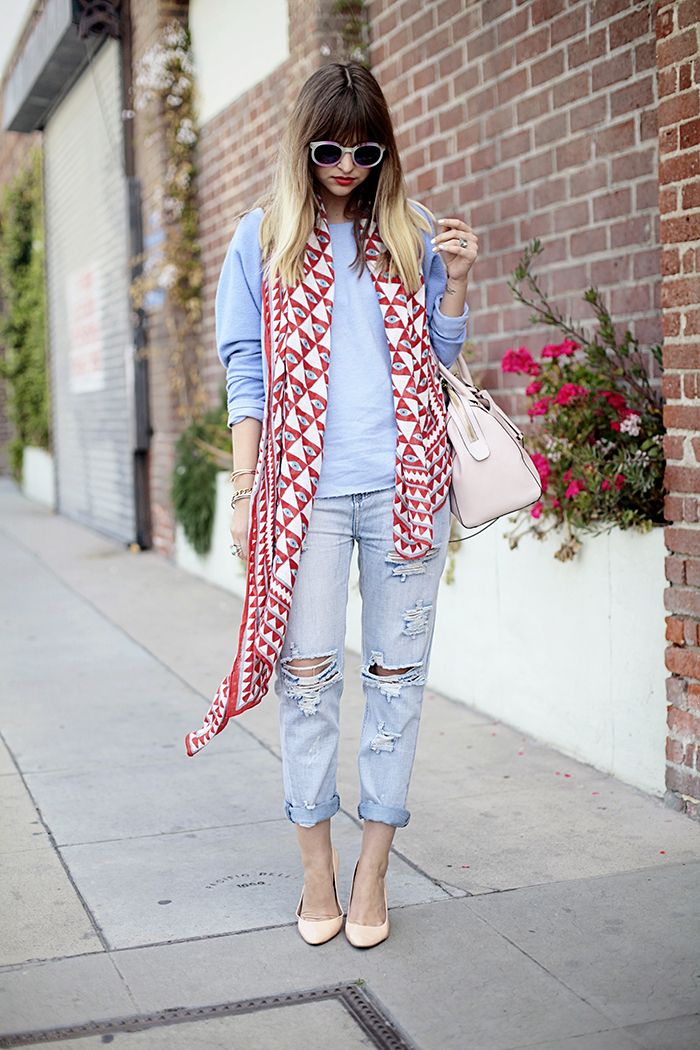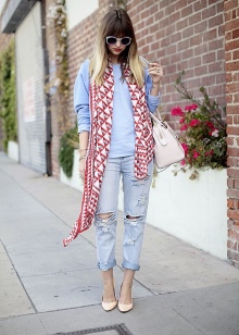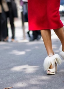 The main thing is to look harmoniously in general. If you choose shoes with a flat sole, it is better to complement the image with details of the same color. Costume jewelry, shawl, stole or handbag of the same color will help solve this problem.