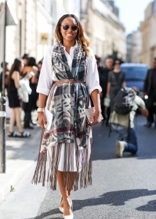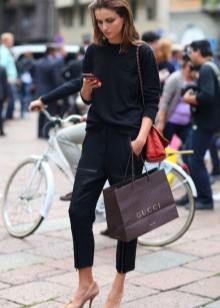 - A white top, milk stilettos and a dark skirt in a colorful pattern are a ready-made version of a fashionable bow.