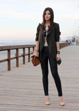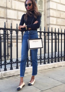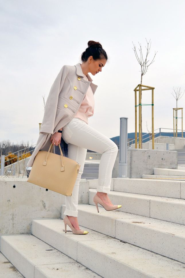 - A black jacket, a neutral-colored shirt, bright accessories (jewelery, a bag) and milk shoes are another recipe for creating a trendy look.