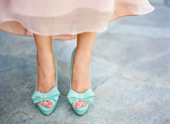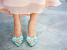 The combination of mint and white color is ideal for creating a romantic and gentle look. It is not necessary to complement the bow accessories mint color. Gentle shoes in tandem with a snow-white outfit will be the highlight of an unsurpassed image. It is better to wear jewelry in blue, blue or green to emphasize the color of the shoe.