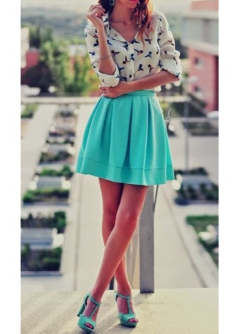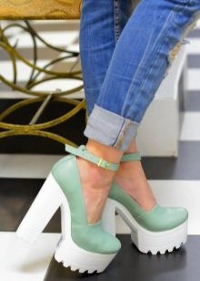 Many women of fashion often combine mint shoes with blue clothes. But do not get carried away, so as not to look tasteless. This color tandem should be diluted with things beige or white.