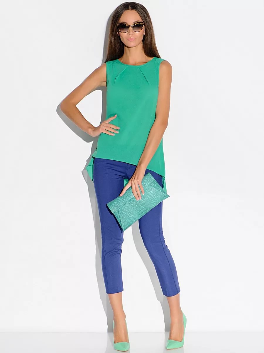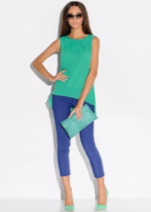Mint shades contain green color, so they can be safely worn with green clothes to create monochrome bows. Beautiful will look combinations of different shades of green, ranging from light green to emerald.