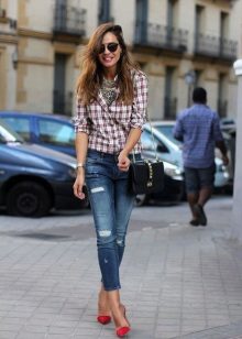 But there are recommendations from stylists for some models. So, for example, classic pumps can be combined both with an evening dress, and with a business dress. And recently it became fashionable to wear them with skinny jeans. Wedge-heeled shoes are more suitable for ethnic look and dresses. Shoes with a thick heel or tractor sole fit perfectly in a set of clothes in the style of straight style.