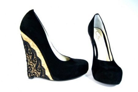 In addition to heels, there is also a wedge and platform. But many women of fashion do not like them very much, so the designers have developed so-called combined models. In such shoes only the front part of the shoe has a platform. And behind it goes into a heel.