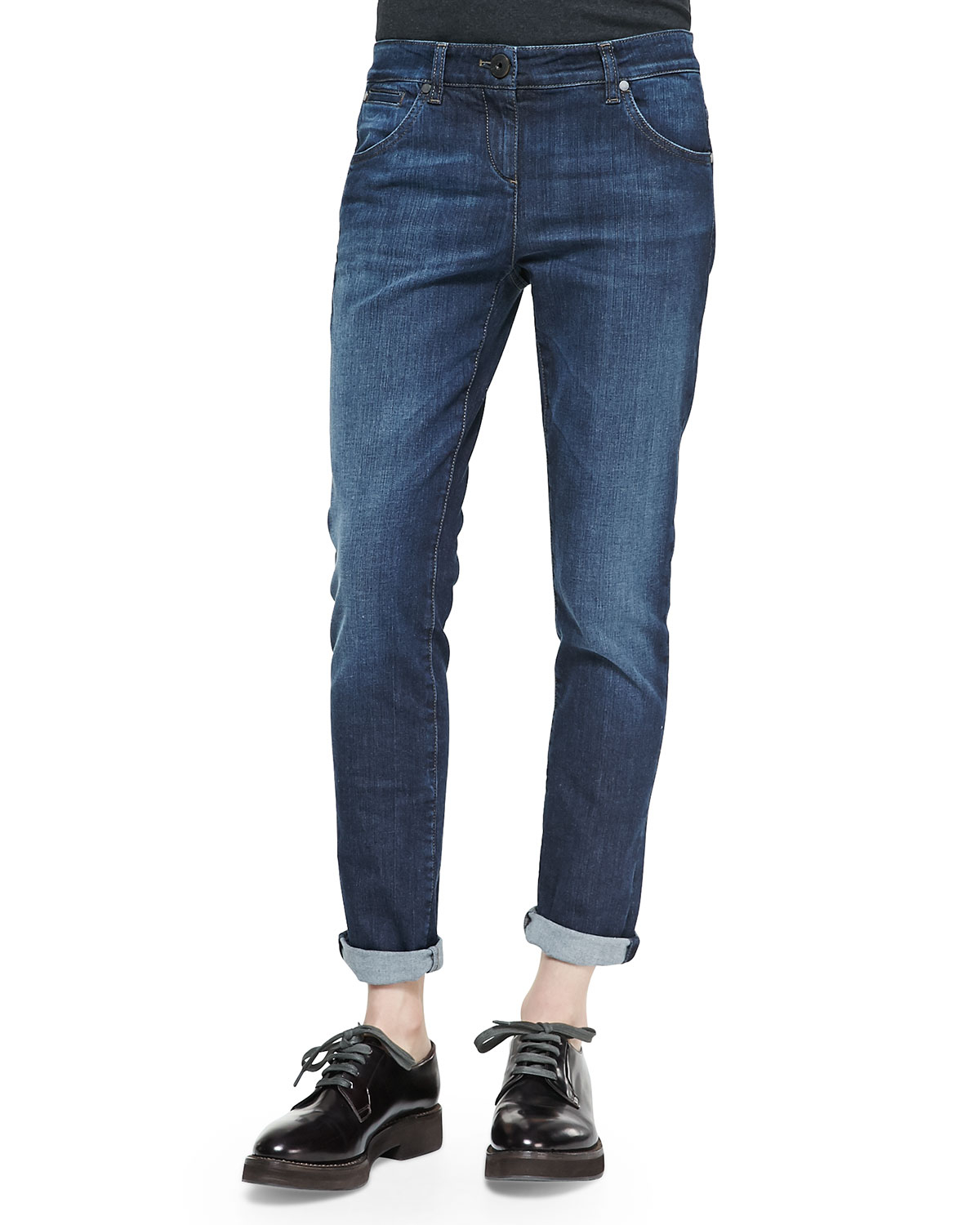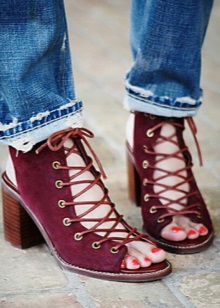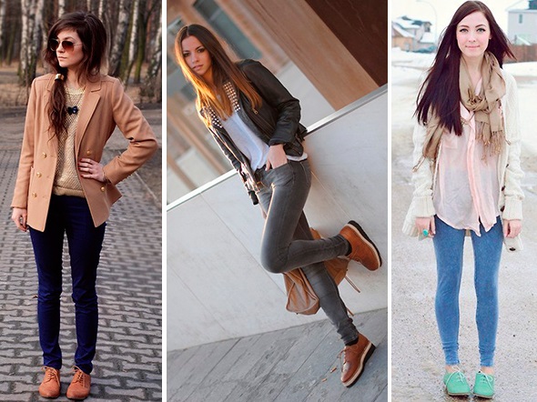 Any lace-up shoes look great with lightweight denim jeans. It is better to give preference to boyfriends or tuck skinny, so that the lacing is clearly visible.