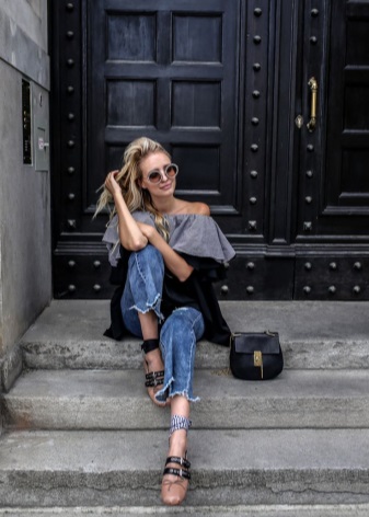 If you really want to combine such shoes with a maxi length, the thing you choose should be made of a very light material that will flap when walking. If this is a skirt, you can pick up a sufficiently open top to it, and if this is a dress, it can be on thin straps or with actual cutouts on the shoulders.