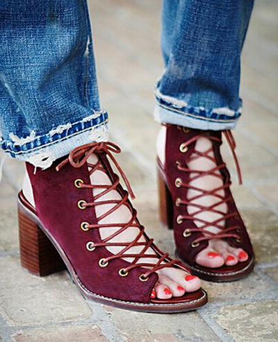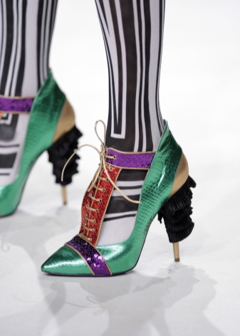 Pointed heels with lacing look nontrivial and stylish. They will be the perfect complement to any fashionable image, suitable even for an evening out and a strict office dress code.